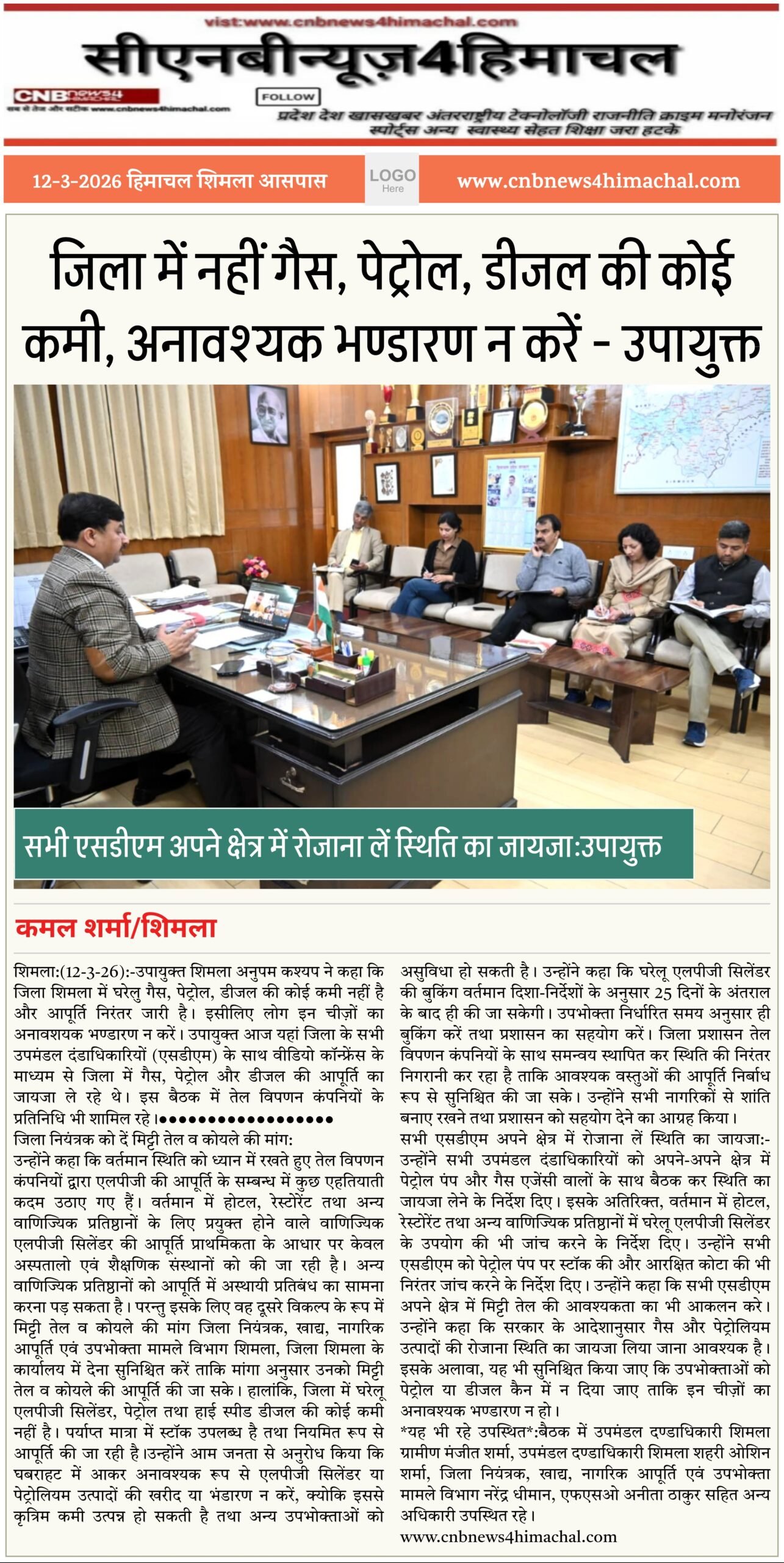 जिला में नहीं गैस, पेट्रोल, डीजल की कोई कमी, अनावश्यक भण्डारण न करें – उपायुक्त* 2 hours ago 99 Views